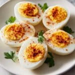 If you prefer your hard boiled eggs warm, simply submerge peeled eggs in hot water for a few minutes before serving. Reheating directly in the air fryer is not ideal as it can dry out the egg, so stick to gentle warming methods.