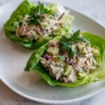 This particular Avocado Chicken Salad Lettuce Wraps Recipe is best enjoyed fresh, as freezing can change the texture of avocado and lettuce. It’s not recommended to freeze the assembled wraps or the salad mixture because the creamy avocado tends to become grainy after thawing.