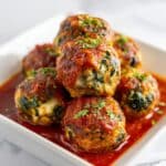 These Baked Chicken Ricotta Meatballs with Spinach are a delicious and healthy twist on classic meatballs. Moist and tender, packed with fresh spinach and creamy ricotta cheese, these meatballs are baked to perfection and simmered in savory marinara sauce. Perfect for a family dinner or meal prep, they pair well with pasta, rice, or crusty bread.