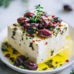 Because feta changes texture when frozen, it’s best to freeze any leftover components like olives or sun-dried tomatoes separately. The baked feta itself is better enjoyed fresh, but if needed, freeze it wrapped tightly for up to 1 month and thaw slowly in the fridge.