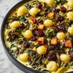 Baked Gnocchi with Sprouts and Leeks is a cozy, flavorful dish combining pillowy gnocchi, sautéed Brussels sprouts and tender leeks in a creamy cheese sauce. Oven-baked until bubbly and golden, it’s the perfect comfort food for fall and winter dinners or a hearty vegetarian main.