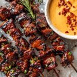 Bang Bang Chicken Skewers are a flavorful and crispy appetizer featuring juicy chicken breast cubes marinated with spices and coated in a creamy, spicy bang bang sauce. Perfectly cooked using an air fryer, oven, or grill, these skewers are a crowd-pleaser with a balance of sweetness, heat, and savory notes.
