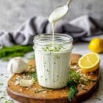 When stored properly in the refrigerator in a sealed container, this ranch dressing will stay fresh for up to one week. Always give it a sniff and look before using if it’s been stored for several days.