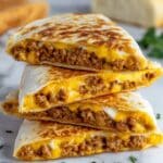 You absolutely can, but make sure it’s fully thawed and reheated properly before assembling the quesadillas. Freshly cooked ground beef offers the best texture and flavor, but using pre-cooked will save time.