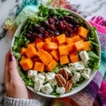 - Serve: Transfer the salad to serving plates or bowls. Optionally, garnish with extra crumbled feta or toasted nuts for added texture and flavor. Serve immediately to enjoy the freshness and warmth of the roasted squash.