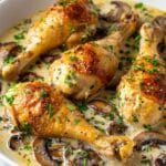 For a fun twist, try serving this creamy mushroom chicken on a bed of garlic herb quinoa or roasted cauliflower rice to add texture and a modern flair. You can also invite your guests to build their own bowls with the chicken and sauce, accompanied by a selection of roasted vegetables or grains, making it both interactive and deliciously customizable.