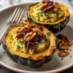 Serve each stuffed acorn squash half directly on individual plates for a rustic, charming presentation. For a dinner party, you can adorn the platter with fresh herb sprigs and a few extra dried cranberries or walnuts scattered around, making the dish as visually inviting as it is flavorful.