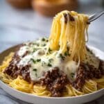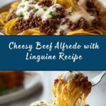 Cheesy Beef Alfredo with Linguine is a rich and creamy pasta dish featuring perfectly cooked linguine tossed in a smooth Alfredo sauce loaded with ground beef, Parmesan, and mozzarella cheeses. Ready in just 30 minutes, this comforting meal combines savory flavors with a luscious texture for a satisfying dinner experience.