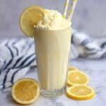 If you have any frosted lemonade left over (which might be rare!), store it in an airtight container in the fridge for up to 24 hours. Be aware the texture may thicken slightly, so give it a quick stir before serving again.