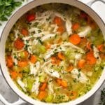 - Combine and serve: Taste the broth and adjust seasoning with salt if needed. Divide the cooked rice evenly into serving bowls, ladle the hot soup with shredded chicken over the rice, garnish with fresh parsley, and serve immediately.