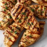 A sprinkle of chopped fresh parsley adds a refreshing green hue and herbal brightness, while vibrant lemon slices not only look inviting but also reinforce that lovely citrus flavor. These garnishes make the dish feel extra special and restaurant-worthy.
