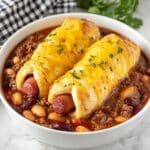 Arrange the wrapped hot dogs on top of the chili and cheese base in your baking dish, spacing them evenly for uniform baking. Pop the whole dish into your preheated oven and bake for 40 to 45 minutes. You’ll know it’s done when the crescent rolls have puffed up and turned a beautiful golden brown, and the cheese inside has melted into a luscious blanket wrapping the sausages. This slow bake melds all flavors wonderfully and creates that irresistible crust.