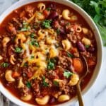 This Chili Mac and Cheese recipe is a hearty, comforting one-pot meal that combines the flavors of chili with creamy macaroni and cheese. Packed with lean ground beef, beans, tomatoes, and spices, then finished with shredded cheddar cheese, it’s perfect for a family dinner or meal prep. Ready in just 30 minutes and serving 8, this dish is a delicious and easy way to bring warmth and flavor to your table.