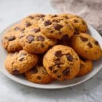 Delight in these soft and cake-like Chocolate Chip Pumpkin Cookies, perfect for fall and holiday seasons. Made with pumpkin purée, warm spices, and melty semisweet chocolate chips, these cookies offer a comforting mix of seasonal flavors and a tender texture that’s sure to please any dessert lover.