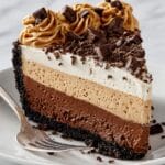 Indulge in the ultimate decadent dessert with this Chocolate Peanut Butter Pie. Featuring a crunchy chocolate wafer crust, a creamy and fluffy peanut butter cream cheese filling, and topped with a rich chocolate ganache, this no-bake pie is perfect for any occasion. Garnished with crunchy peanuts, chocolate shavings, and peanut butter cups, it’s a delightful combination of chocolate and peanut butter flavors sure to satisfy your sweet tooth.