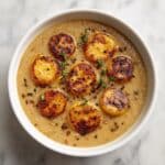 This Creamy Roasted Garlic Potato Soup is a comforting and flavorful dish featuring tender Yukon Gold potatoes and sweet, caramelized roasted garlic blended into a smooth, creamy base. Enhanced with sautéed onions, thyme, and a touch of milk or cream, this soup offers a rich texture perfect for cozy meals. Garnished with fresh chives or green onions, it’s an easy-to-make American classic that satisfies with every spoonful.