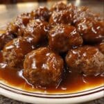 This recipe freezes beautifully. Freeze the cooked meatballs and gravy separately if possible in freezer-safe containers or heavy-duty bags for up to 3 months. Thaw overnight in the fridge before reheating for best results.