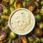 While you can freeze the roasted Brussels sprouts, they may lose some crispness upon thawing, so it’s better to freeze only if necessary. The Dijon aioli does not freeze well, so make a fresh batch when you’re ready to serve.