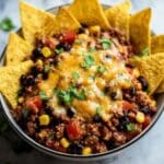 - Layer Chips and Cheese: Evenly layer the mixture with tortilla chips and then sprinkle the shredded cheese on top, creating a layered casserole effect.