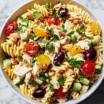 This Waldorf Chicken Pasta Salad is a perfect blend of tender chicken, al dente bow tie pasta, crisp celery, sweet grapes, and crunchy almonds, all tossed in a creamy lemon-mayo dressing. Ideal for cookouts or summer gatherings, this refreshing salad offers a delightful mix of textures and flavors that’s easy to prepare and sure to please any crowd.