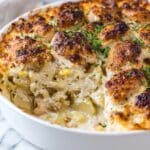 Cover the casserole with foil and pop it in the oven for 30 minutes to bake. After that initial baking, remove the foil and continue baking for another 10 to 15 minutes. This step lets the stuffing crisp up beautifully and the filling bubble with savory goodness. When the top is golden and irresistible, it’s ready!
