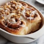 - Bake the Dish: Place the baking dish in the preheated oven and bake for 25-30 minutes until the cinnamon rolls are golden brown and fully cooked through.
