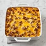 - Rest and serve: Remove the casserole from the oven and let it rest for 5 to 10 minutes to firm up before slicing into 8 portions and serving warm.