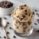 Since this dough is meant to be eaten raw, reheating isn’t necessary or recommended. However, if you like it slightly softened after refrigeration or freezing, let it sit at room temperature for 5-10 minutes to regain its scoopable, luscious texture.