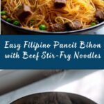 This Filipino Pancit with Beef is a classic noodle stir-fry that combines tender beef sirloin with delicate pancit bihon noodles and colorful vegetables. The dish is flavored with a savory blend of soy sauce, oyster sauce, and optional fish sauce, creating a delicious and satisfying meal perfect for any occasion.