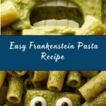 Presentation is everything when it comes to this recipe. Try serving the Frankenstein pasta on a black or orange platter to heighten the Halloween vibe. You could also place mini breadsticks on the side as “bones” or offer small cups of marinara or pesto dipping sauces for extra fun.