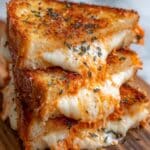 A delightful twist on a classic grilled cheese, this Garlic Parmesan Pizza Grilled Cheese combines the comforting melty cheese and toasted bread with flavorful garlic Parmesan butter, zesty marinara sauce, and spicy pepperoni slices for an irresistible pizza-inspired sandwich.