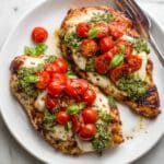 While you can freeze the cooked chicken breasts, it’s best to omit the fresh toppings and cheese until serving. Freeze the plain grilled chicken in freezer bags or containers for up to 2 months. Thaw thoroughly in the refrigerator before reheating and adding the fresh Margherita toppings.