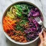 This Ground Beef and Cabbage Stir-Fry is a quick and flavorful 15-minute meal featuring lean ground beef sautéed with fresh vegetables like cabbage, bell pepper, scallions, and carrot. Enhanced with garlic, tamari sauce, and a touch of crushed red pepper flakes, this dish is a healthy, low-carb stir-fry perfect for weeknight dinners.