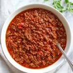 This Hearty Slow Cooker All-Meat Chili (No Beans) Recipe keeps beautifully in an airtight container in the refrigerator for up to 4 days. The flavors deepen as it rests, making leftovers just as satisfying as the first meal.