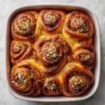 - Form rolls: Roll the dough tightly from the long side into a log. Slice into 12 even rolls and place them in a greased 9×13-inch baking dish. Cover and let the rolls rise again for 30 to 45 minutes to allow them to puff up before baking.