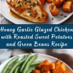 This Honey Garlic Glazed Chicken with Roasted Sweet Potatoes and Green Beans is a delicious and balanced meal featuring tender chicken breasts marinated and glazed in a sweet and savory honey garlic sauce, served alongside perfectly roasted sweet potatoes and sautéed green beans with balsamic and Dijon flavors. A wholesome and flavorful dinner ready in just over an hour.