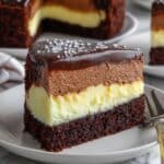 Let frozen slices thaw in the refrigerator overnight. You can enjoy it chilled or warm it slightly in the microwave for 15-20 seconds to bring out the creamy layers’ softness and the chocolate’s richness.