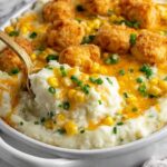 Next, bake or cook your frozen chicken tenders or nuggets following the package directions until they’re golden, crispy, and thoroughly heated. This step ensures your chicken stays tender and juicy inside while contributing a delightful crunch that contrasts beautifully with the softness of the potatoes.