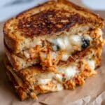 A flavorful twist on the classic grilled cheese sandwich, the Kimchi Grilled Cheese combines melted mozzarella and sharp cheddar cheeses with spicy, tangy kimchi for a Korean-inspired fusion meal. Buttered sourdough bread is toasted to golden perfection on the stovetop, creating a crispy and melty sandwich perfect for a quick lunch or comforting dinner.