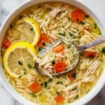 This comforting Lemon Chicken Orzo Soup is a flavorful and hearty dish perfect for any season. Tender shredded chicken, fresh vegetables, and orzo pasta come together in a bright, lemon-infused chicken broth for a delicious homemade soup that serves six.