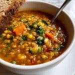 A hearty and nutritious Lentil Quinoa Soup made with fresh vegetables, fragrant spices, and wholesome lentils and quinoa. This vegan and gluten-free Mediterranean-inspired soup is perfect for a healthy, comforting meal any day of the week.