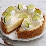 For a simple yet stunning presentation, decorating your cheesecake with swirls of softly whipped cream and thin lime slices creates a fresh and inviting look. A sprinkle of extra lemon or lime zest on top adds a vibrant zing to both the eye and the palate, making it almost too pretty to eat!