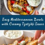 This vibrant Mediterranean Bowls recipe features a delightful combination of roasted chickpeas, bell peppers, onions, and mini potatoes, complemented by a creamy vegan tzatziki made from yogurt, tofu, and fresh herbs. It’s a wholesome, plant-based meal perfect for a nutritious lunch or dinner, offering bold flavors and satisfying textures.