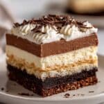 Delight in these Mini Chocolate Layered Cheesecakes, featuring a rich chocolate cookie crust, a silky chocolate ganache layer, a creamy cheesecake filling, and topped with luscious chocolate whipped cream. Perfectly portioned for individual servings, these elegant desserts blend indulgent chocolate flavors with smooth cheesecake texture for a crowd-pleasing treat.
