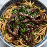 A quick and flavorful Mongolian Beef and Noodle recipe featuring tender seared flank steak in a rich, savory sauce served over tender noodles. Perfect for a satisfying weeknight dinner with bold Asian-inspired flavors.