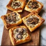 These Mushroom, Shallot, and Herbed Goat Cheese Tarts are a delicious French-inspired appetizer featuring flaky puff pastry topped with savory sautéed mushrooms, sweet shallots, fresh thyme, and creamy herbed goat cheese. Perfectly golden and puffed, these tarts make an elegant and flavorful starter or snack.