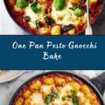 Finishing your One Pan Gnocchi Pesto Bake Recipe with fresh basil leaves adds a bright herbal note and an inviting touch of green. A sprinkle of extra Parmesan can also amp up the cheesy goodness if you’re feeling indulgent.