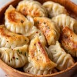 Classic pan-fried dumplings featuring a savory pork and napa cabbage filling, perfectly crisped on the bottom and steamed to juicy perfection. These Asian-style potstickers make a delightful appetizer or snack, served with your choice of dipping sauces.