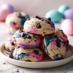 These festive Chocolate Chip Cookies are a colorful twist on a classic favorite, featuring pastel-colored dough portions marbled together and loaded with semi-sweet chocolate chips and Easter-themed M&Ms. Perfect for holiday celebrations or anytime you want a fun, delicious treat with a vibrant look.