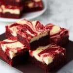 You can, but gel food coloring is concentrated and won’t thin out the batter like liquid food coloring might. Using gel helps maintain the ideal batter consistency and vibrant color for your Red Velvet Cheesecake Swirl Brownies Recipe.